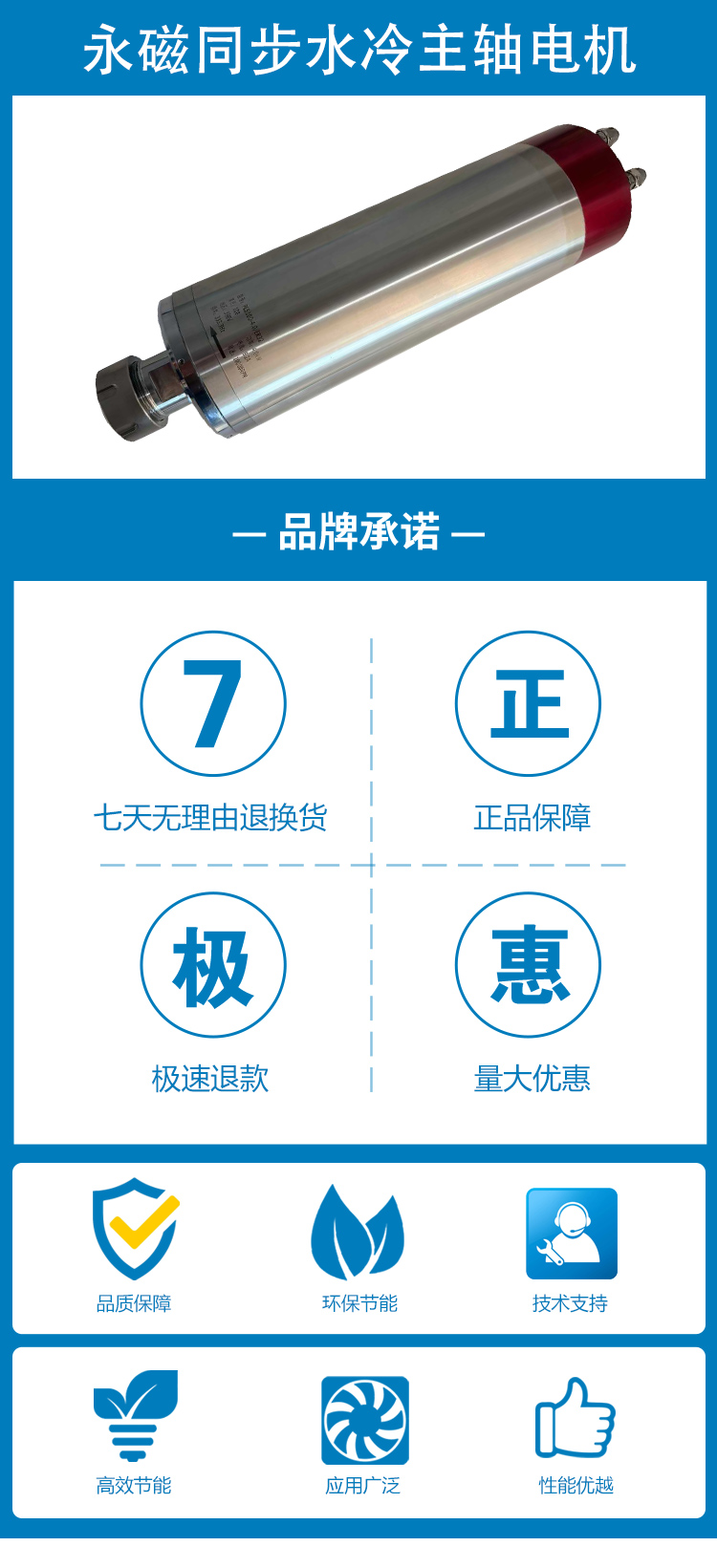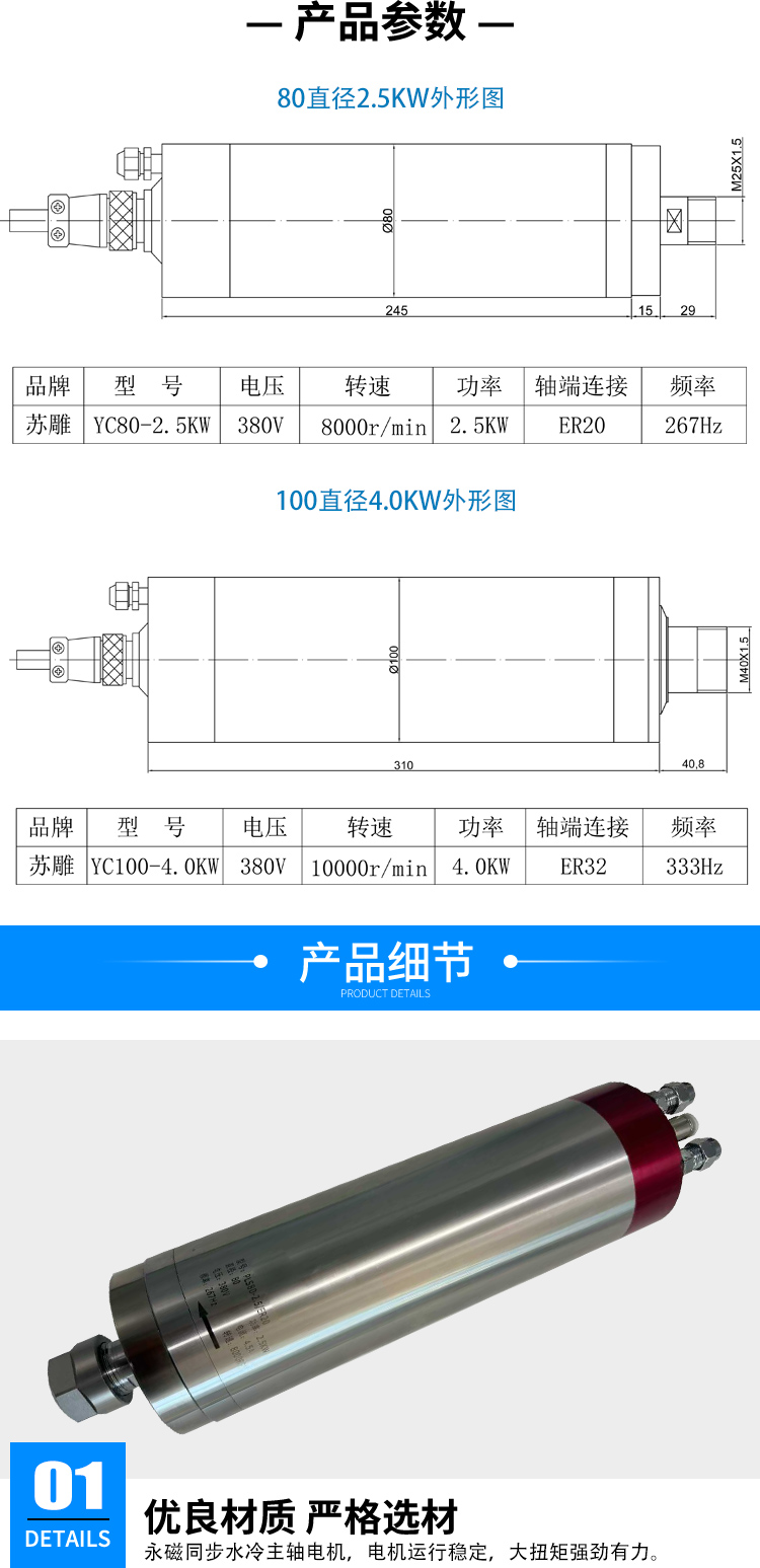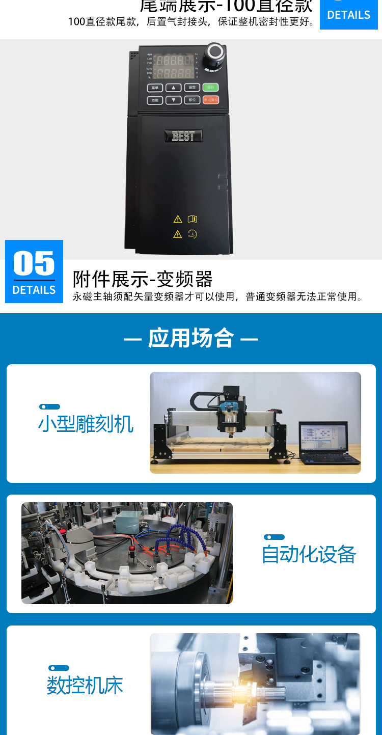 永磁同步主轴电机80/100低转速大扭矩模具精雕水冷雕刻打磨切割